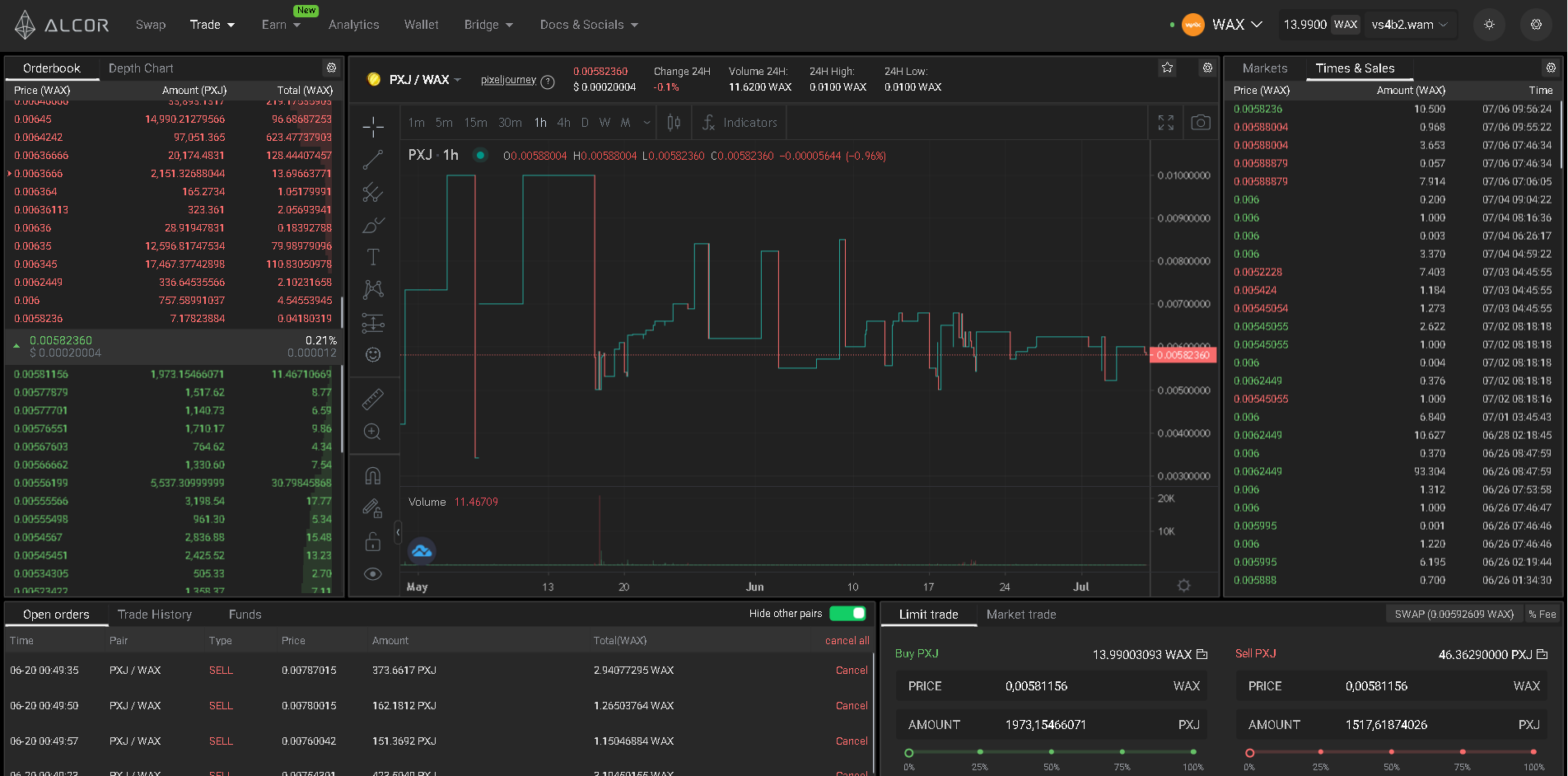 Alcor, the leading Spot Market DEX on the Wax Blockchain